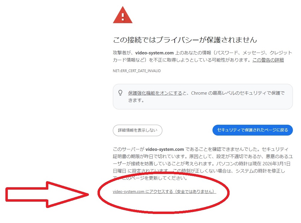 ただいまS-systemのSSL証明の有効期限が切れております関係で、