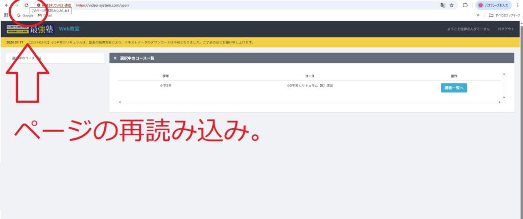 ⑤もし更新して再度ログイン画面に戻るなどループしてしまう場合、「シークレットタブ・シークレットウィンドウ」内で同じ手順をお試しください。