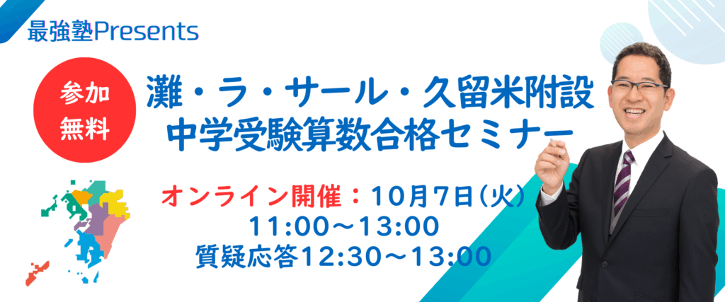 この度、10月にオンラインにて灘中受験算数合格セミナーを開催することとなりました。