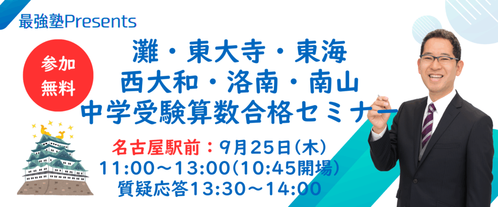 こちら最強塾は、初のオンラインで灘・東大寺・東海中算数セミナーを開催致します。